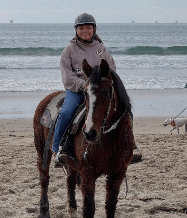 Our beach rides are immersive, unforgettable experiences that blend skilled horsemanship with one of California’s most iconic landscapes. Riding along the shoreline offers a rare connection between horse, rider, and ocean—open space, fresh air, and forward-moving horses beneath you. These rides are designed for confident riders who want something more than a casual walk: real rhythm, real scenery, and the magic of moving with a horse beside the sea.