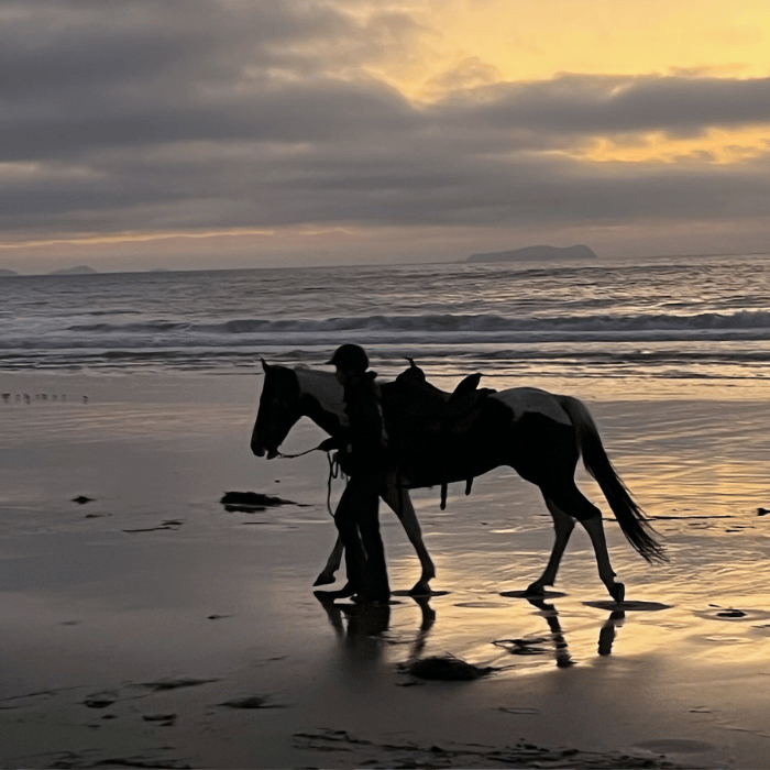 The Monthly Riding Membership is for riders who want consistency, progression, and real partnership with their horse. Members can ride at least twice weekly on scheduled local trails, with priority access to beach rides, longer adventures, and camping trips.
